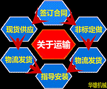 華雄機械對于常規(guī)產(chǎn)品現(xiàn)貨供應(yīng),當天訂貨,當天發(fā)貨,購買便捷。我公司按照合同規(guī)定的時間、地點,把貨物運輸?shù)侥康牡亍X浳锿羞\后,我公司按照物流變更隨時通知收貨人。對于非標定制,我公司在預(yù)定工期內(nèi)完工之后及時通知客戶,如客戶有指定物流或快遞,我們會按照客戶要求發(fā)貨,如果客戶無特殊制定物流或快遞,我公司默認德邦物流發(fā)貨。