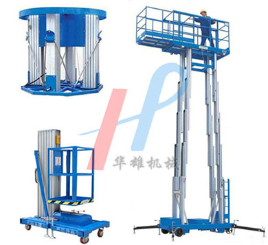 鋁合金升降機大致分為單桅升降機、雙桅升降機、三桅升降機和多桅升降機。鋁合金升降機采用高強度優(yōu)質鋁合金材料,具有造型美觀、體積小、重量輕、運轉靈活,推行方便,升降平穩(wěn)、安全可靠等優(yōu)點,它輕盈的外觀能在極小的空間內發(fā)揮最高的舉升能力。廣泛用于工廠、賓館、餐廳、車站、影劇院、展覽館等場所,是保養(yǎng)機具、油漆裝修、調換燈具、電器、清潔保養(yǎng)等用途的最佳安全伴侶。